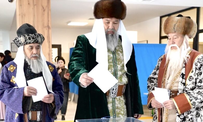 Қазақ хандары Қасым хан, Есім хан және Тәуке хан бейнесіндегі азаматтар бір мезетте дауыс берді.