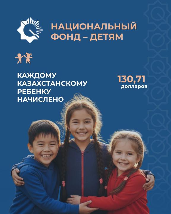 В рамках программы «Национальный фонд — детям» каждому казахстанскому ребенку, которому еще не исполнилось 18 лет, сегодня начислено по 130,71 долларов США.